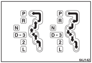 Use esta posição para condução normal. Com a alavanca seletora na posição “D” você pode ter uma mudança automática para uma marcha inferior pressionando o pedal do acelerador. Quanto maior a velocidade do veículo, é necessário pressionar com mais força o pedal do acelerador para reduzir a marcha.