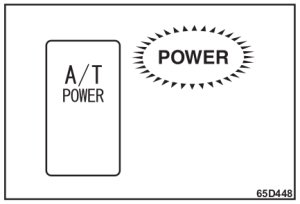 Quando você precisar maior potência em terrenos montanhosos ou partida suave em pisos escorregadios, pressione o interruptor “A/T POWER”. Para ativar o seletor do modo A/T Power, pressione o interruptor “A/T POWER” e a luz indicadora “POWER” acende no painel de instrumentos. Para desativar, pressione novamente o interruptor e a luz indicadora “POWER” apaga.
