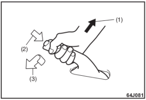 - Sempre acione totalmente o freio de estacionamento antes de deixar o veículo ou ele pode se mover, causando ferimentos ou danos. Ao estacionar, certifique-se que a alavanca de mudanças da transmissão manual esteja em 1ª marcha ou ré e que a alavanca seletora da transmissão automática esteja na posição “P”. Nunca deixe a alavanca de transferência* na posição “N” (Neutro) ao estacionar. Lembre-se, embora a transmissão esteja engatada ou em “P”, você deve acionar totalmente o freio de estacionamento.